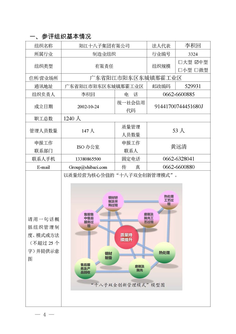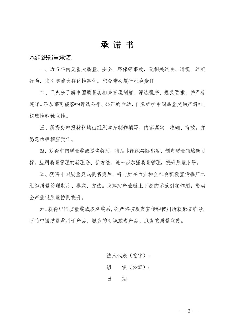 關(guān)于中國(guó)質(zhì)量獎(jiǎng)申報(bào)表公示